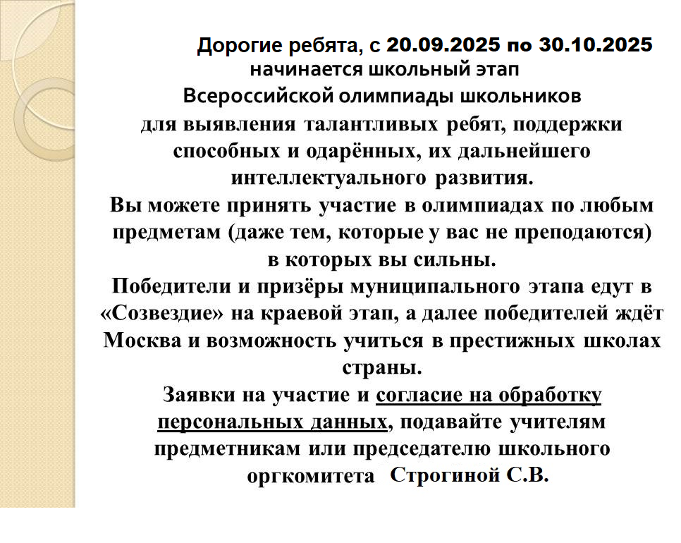 Приказ об итогах школьного этапа Всероссийской олимпиады школьников 2025